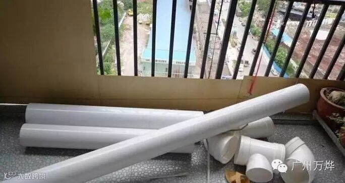 材料:PVC排水管一根200MM的,一根160MM,,两个200MM弯头、一个160MM的三通,一个200/160d的异三通,一瓶PVC胶水。