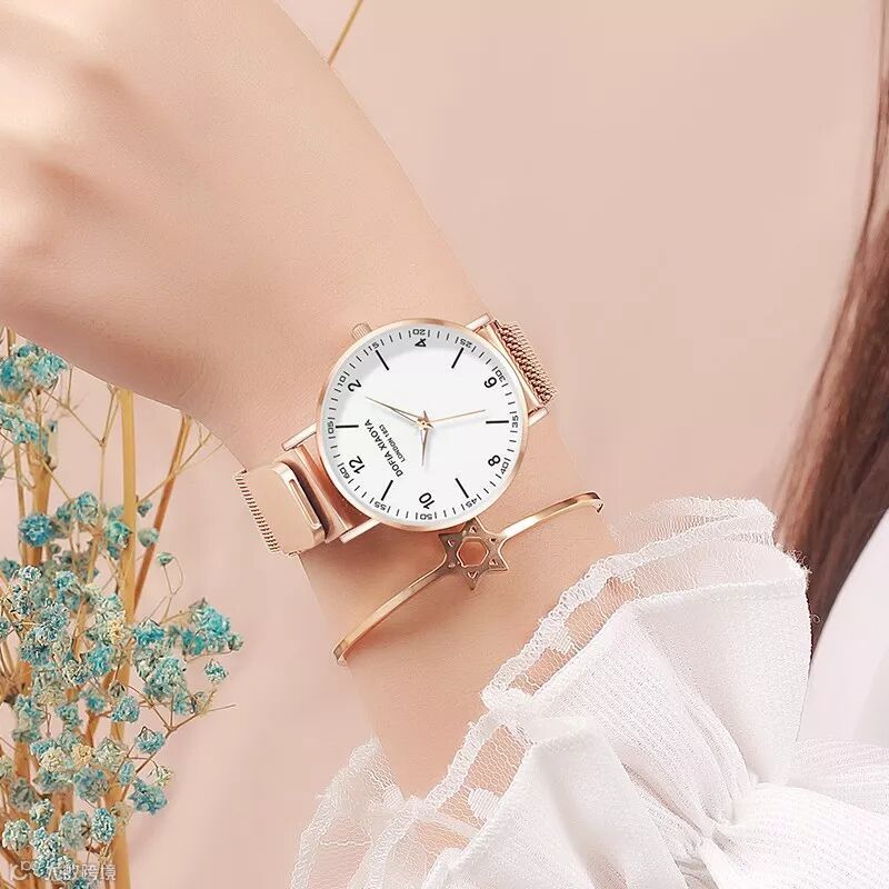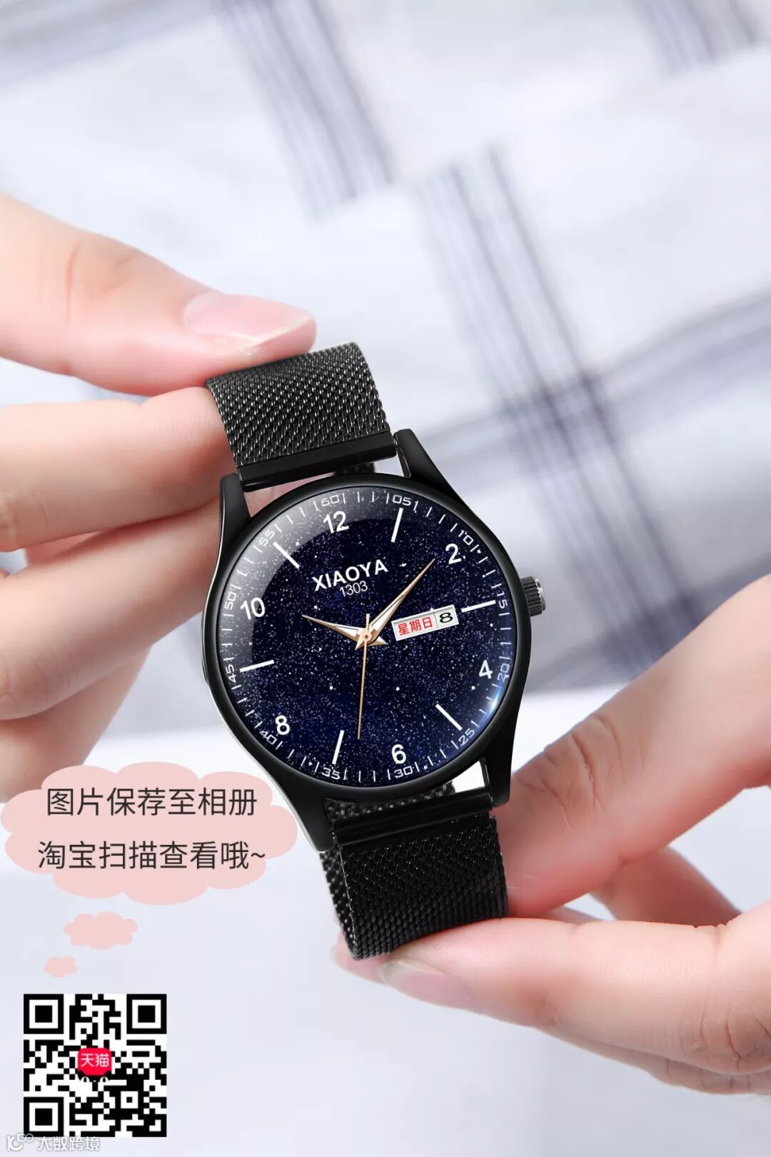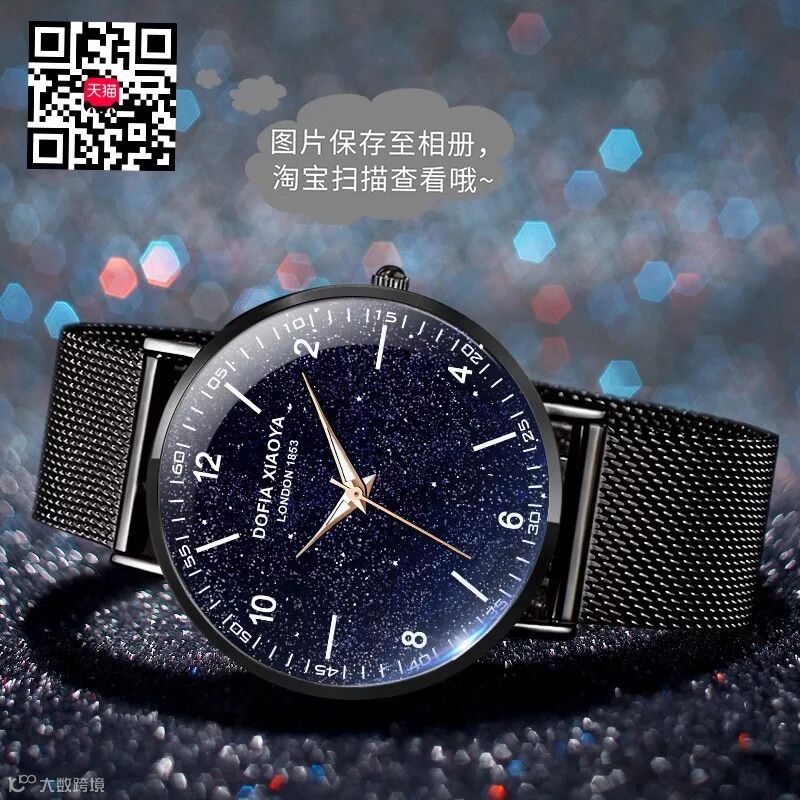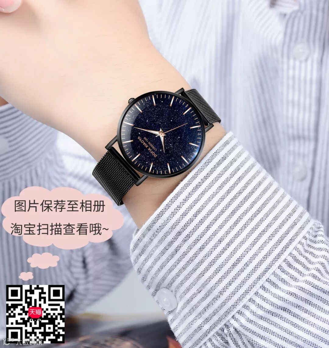 这款手表呢,采用罗马刻度,加上璀璨的星空表盘,时尚又简约,在大众的手表里,就显得很特别,样式特别的新颖。