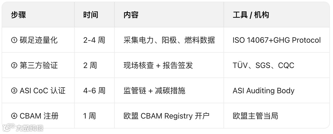 输出:Verified Carbon Footprint Report + ASI证书 → 进口商可直接抵扣关税