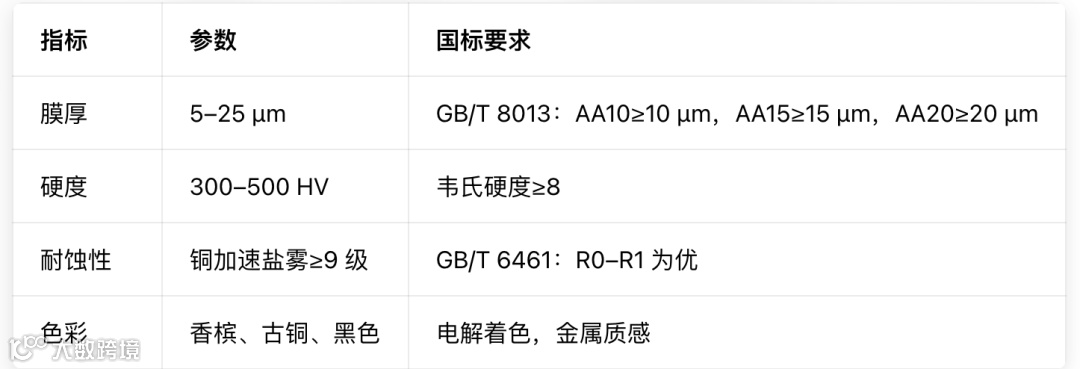 原理:电化学电解,表面生成5-25μm致密氧化铝膜