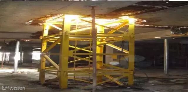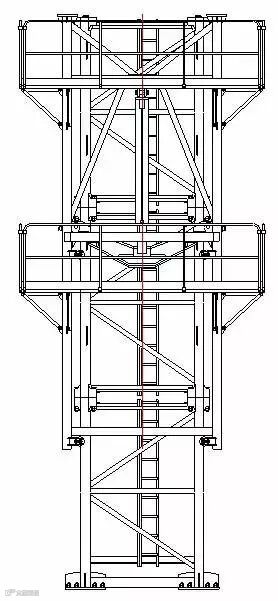 地面上先将套架拼装成整体,然后将套架吊装,套在塔身节外面;套架上的活动爬爪放在标准节的第一节(从下往上数)上部的踏步上;顶升油缸的位置必须与塔身踏步同侧。