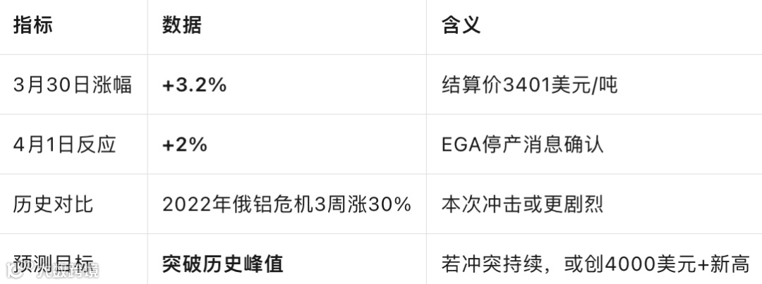 行业类比:2022年俄铝制裁担忧曾推动铝价3周涨30%(年产400万吨),而本次单一事件即涉及320万吨 ,冲击烈度远超历史。