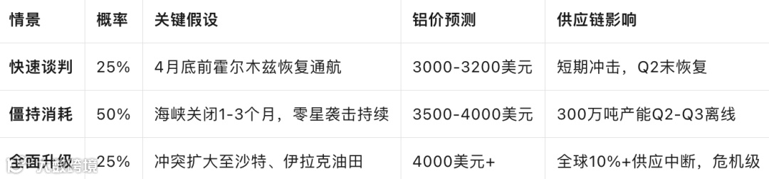 基准判断:"僵持消耗"概率最高,铝价中枢上移至3500美元,中国绿电铝享受历史性溢价窗口。