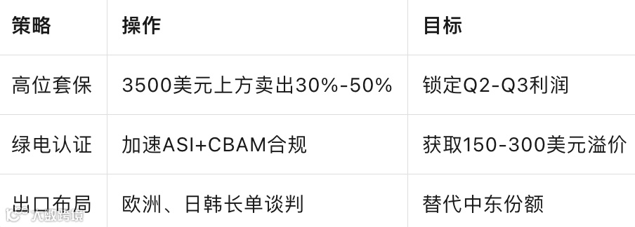 关键行动:加速云南、青海、内蒙绿电铝认证,抢占欧洲、日韩替代需求窗口。