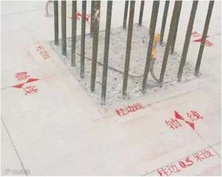 3、柱边线采用墨线沿设计柱边位置弹出框线;边框线宜两端各延长不少于20cm,备做吊线检查使用。