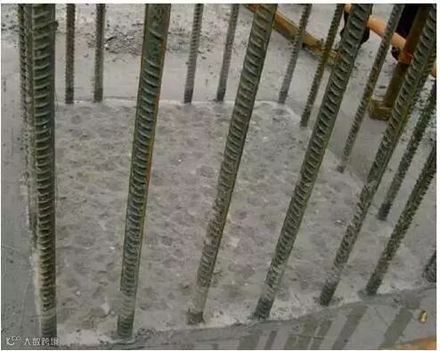 1、柱根凿毛,首先剔除柱边线范围内的砼浮浆,直至露出均匀的石子。