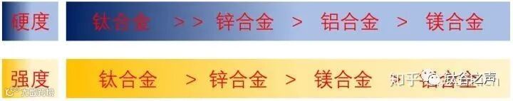 这四种合金,钛合金最硬,强度也最好。硬度方面,钛合金要远硬与其他三种合金。就抗拉强度而言,钛合金强与锌合金,其次是镁合金,强度最低的是铝合金。