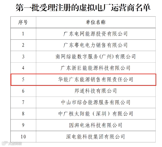 2025年8月19日,广东电力交易中心有限责任公司发布《2025年7月虚拟电厂运营商注册公示的通知》,公示了广东省第一批虚拟电厂运营商名单,华能广东能源销售公司成功入选,成为首批10家入选单位之一。