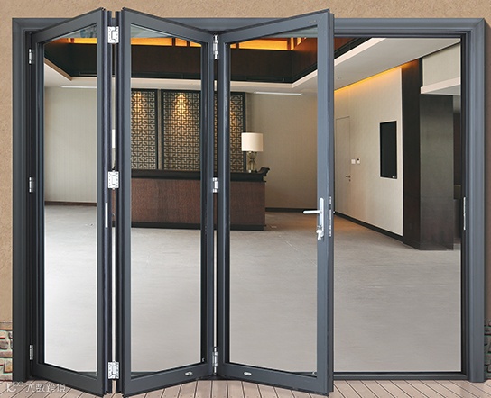 折叠门为多扇折叠,可推移到侧边,占空间较少。适用于各种大小洞口,尤其是宽度很大的洞口,例如阳台,五金构建复杂,安装要求高。