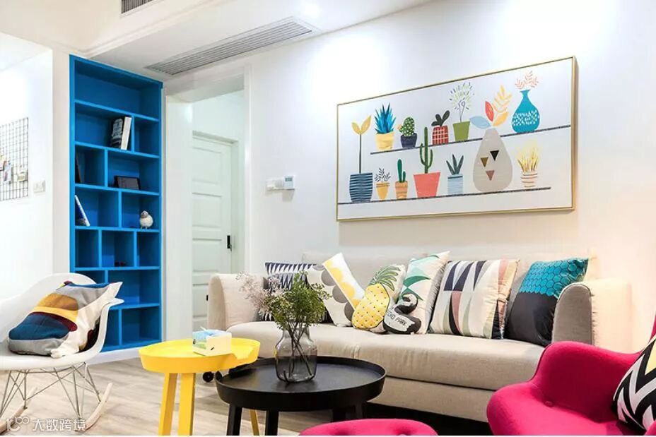 色彩是形塑空间氛围最有效率的手段。不妨在这整个空间脸面找个地方当做视觉焦点,使用跳色的手法让人觉得这个空间在配色上也有主题。