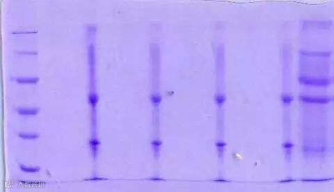 若超过 1 h 甚至更长仍未聚合,应检查配制的操作有无错误。由于 TEMED 催化 APS 释放相关化学基团,再由 APS 释放的基团催化 Acr/Bis 聚合,所以如果 APS 不新鲜的话加再多的 TEMED 效果也不佳,这就是为什么推荐 APS 每周新鲜配置的原因。