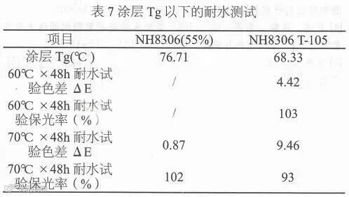 通过DSC测试了NH8306(55%)和NH8306/T-105的Tg,并在涂层的Tg以下进行了48h的耐水试验。