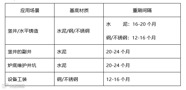这些时间间隔可能根据与铝水接触的频率和数量而缩短。例如,经过一次大漏铝事故后,可能马上需要对一面或多面井壁进行重新涂覆。