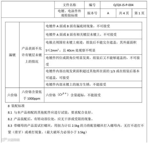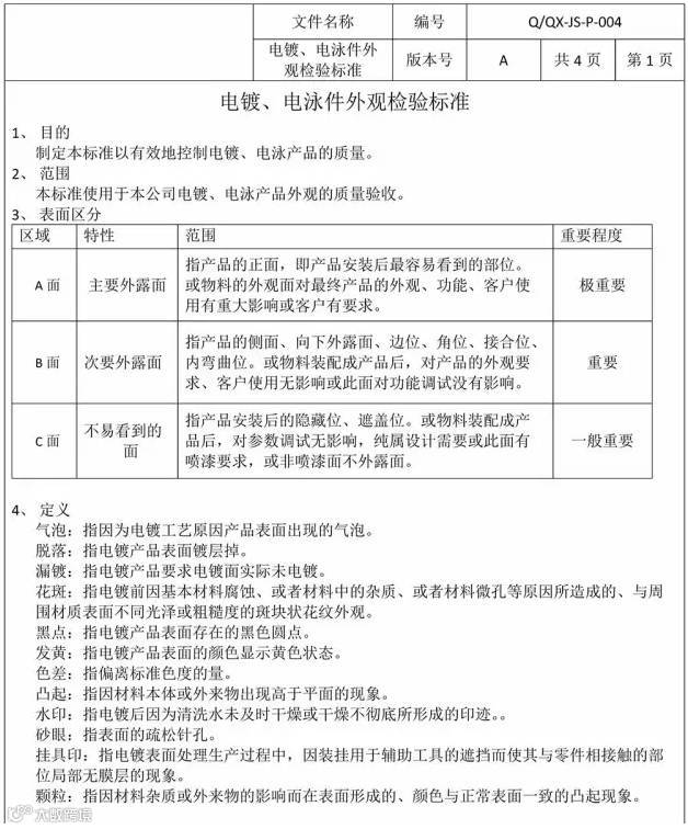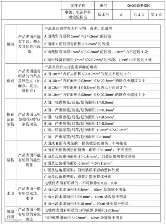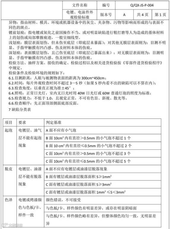 导读:下图为电镀、电泳件外观检验标准: