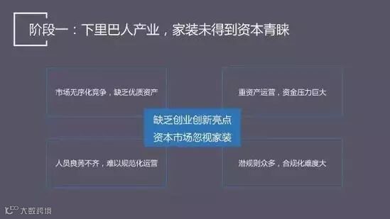 从资本市场看来,在那之前整个家装上市公司是微乎其微的,只有东易日盛,其他都没有上市,整个家装行业是不被资本待见的。市场无序化竞争,缺乏优质资产,潜规则众多,合规化难度大。