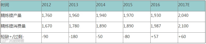 从2011年开始,电解镍经历了持续五年的供应过剩,镍价也持续下跌,2016年全球镍市转入阶段性短缺,2017年一季度,供需缺口持续扩大,一方面是镍矿供应减少及冶炼产量的收缩,另一方面是需求的增加。短期来看可能由于国内钢铁行业环保限产等因素导致阶段性需求下降,中长期来看,受益于中国的一路一带政策和全球的经济复苏,镍的需求将随着钢铁行业需求的提升也将同步增长,故镍价仍有回升空间。