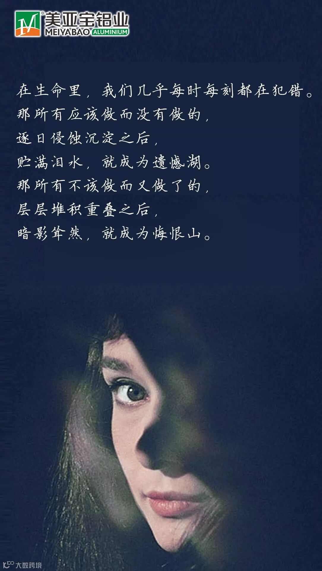 导读:在生命里,我们机会每时每刻都在犯错。那所有应该做而没有做的,逐日侵蚀沉淀之后,贮满泪水,就成为遗憾湖。那所有