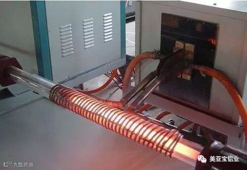 铸锭加热采用工频感应加热,这种加热方式的特点是加热时间短,在3min内即可达到500℃左右;温度控制准确,误差不超过±3℃。如果用电阻炉缓慢加热,将会导致Mg2Si相析出,影响强化效果。