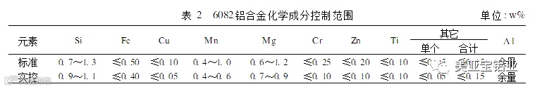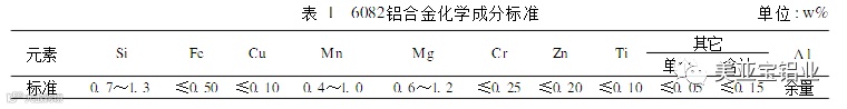 GB/T3190-1996中6082铝合金化学成分见表1。