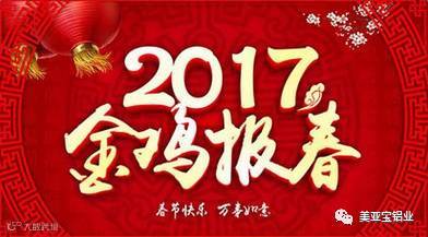 2016年广西广银美亚宝铝业所有成绩的取得,离不开每一位员工付出的辛勤汗水,更离不开广大客户朋友们的的理解与支持。在此,美美谨代表公司全体同仁向一直支持广西广银美亚宝铝业的客户朋友们致以崇高的敬意和衷心的感谢!并提前给大家拜个早年,祝广大客户朋友们新年快乐,阖家幸福,生意兴隆,财源广进!