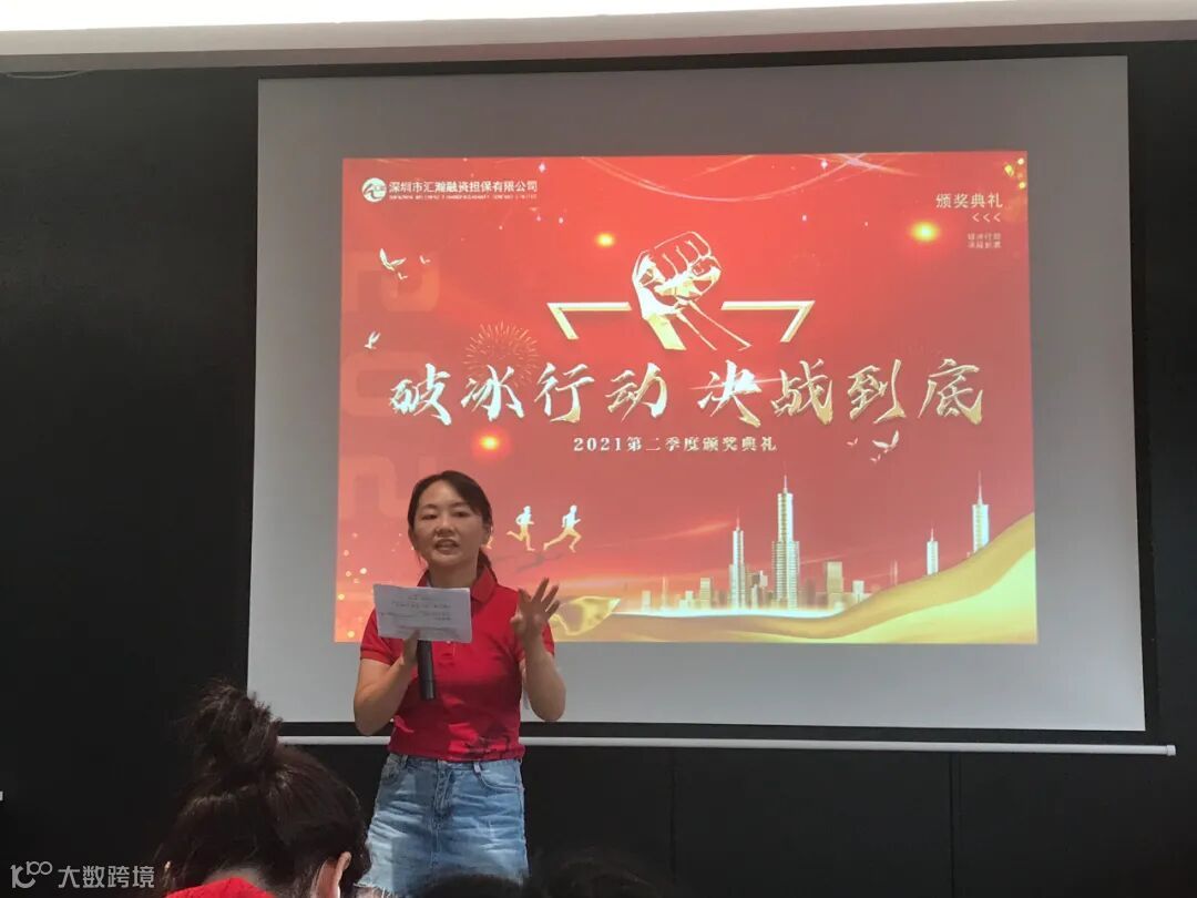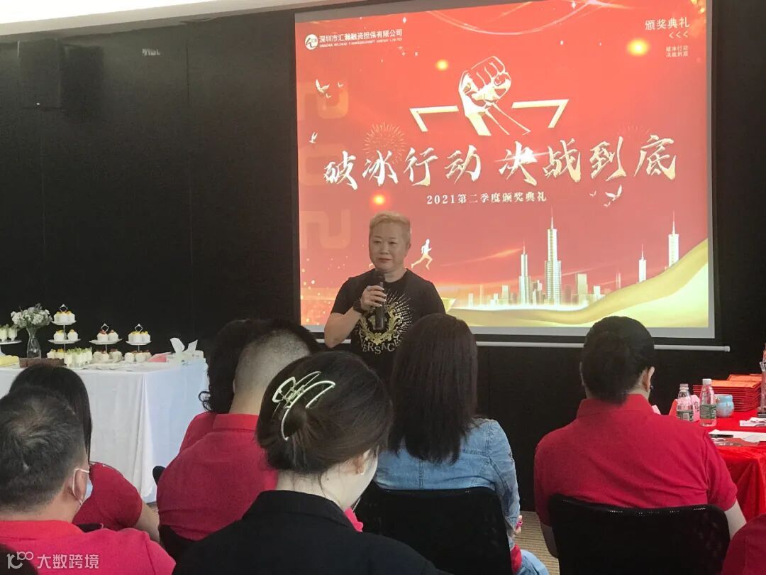 深圳市汇瀚融资担保有限公司副总经理赖妙文先生以及总经理江榕女士,他们的演讲时而幽默风趣时而铿锵有力,感染力十足的致辞给会议起了个完美的开头!虽然今年市场行情不太好,但公司会竭尽全力帮助大家解决难题,我们要一起冲破难关,未来的道路很光明!