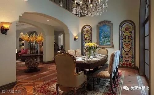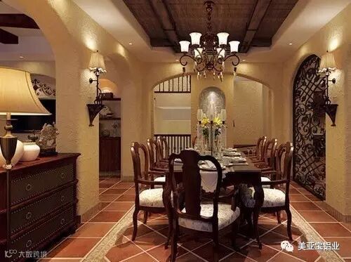 “西班牙地中海风格”是一个虚无的建筑经典,是多种文化的融合。外观一般是屋顶多为红色筒瓦;墙体厚重,多为白色、米色,异型墙面;屋檐朝两侧平缓外伸,户内有庭院;门廊和窗多呈拱型,窗洞略小。屋内会有小的水池、木制阳台、窗台花盆架。室内装修风格特点:捕捉光线、取材自然,大胆而自由地运用色彩、造型。造型则为哥特式拱券、巴洛克的雕花(来源:慧聪建材网)。