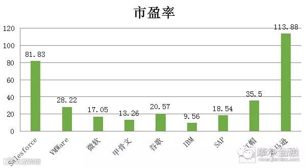 如果将亚马逊定义为一家信息技术公司,那从估值上来看也是远高于行业巨头。