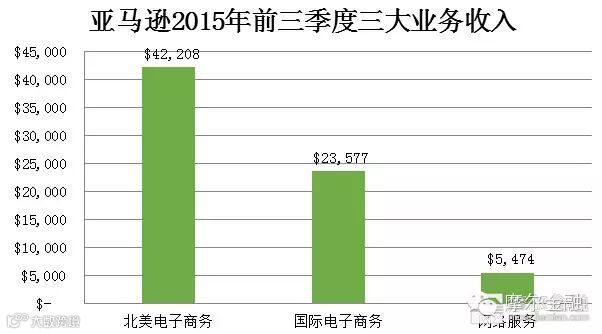 亚马逊目前拥有两大业务板块,分别是电子贸易和亚马逊网络服务(AWS)。其中电子业务分为北美区电子贸易和国际电子贸易。而从收入来源来看,亚马逊的主要业务依然是电子贸易。在今年过去的9个月,亚马逊电子贸易营业收入占总收入90%以上。其中北美区电商业务收入同比增加28%,占总营收的50%以上,其中电子产品和百货增长强劲,同比增速超过35%。
