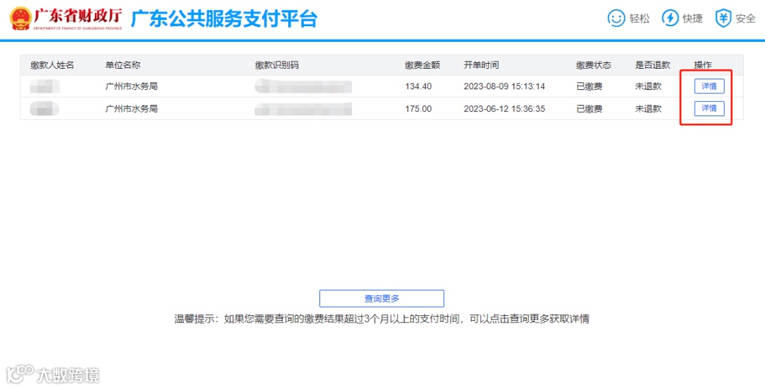 复制上面的链接到浏览器,点击“缴费结果”,查询方式选择“手机号码”,“手机号码”为预留在我司的手机号,点击“查询”进入缴款结果界面,点击需要电子缴费凭证的“详情”进入缴款书详情,点击“查看电子缴款书/电子票据”。