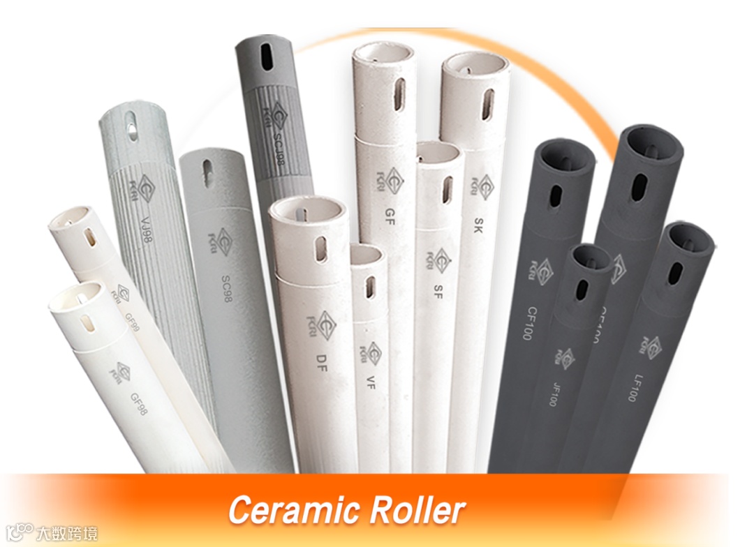 Ceramic roller: A series of products in various temperature areas of the kiln are on displayed.