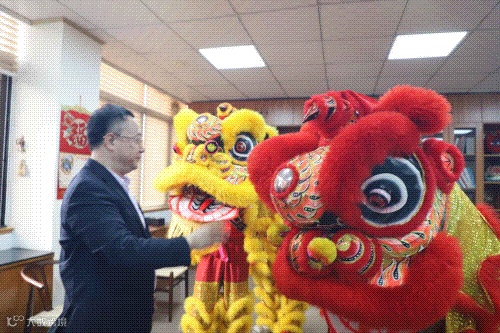 鞭炮一响黄金万两!喜庆的舞狮队将财气和祥瑞传遍金刚集团总部各大办公区域。