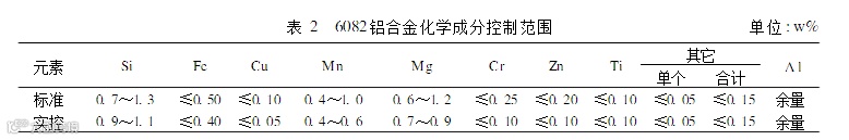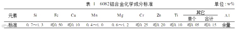 GB/T3190 -1996中6082铝合金化学成分见表1。