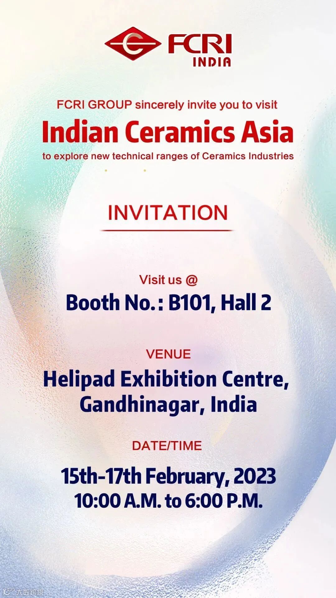 2月15日~17日,2023印度国际陶瓷工业展览会将在印度甘地纳格尔展览中心举办。金刚集团将在2号馆B101展位与您相聚。