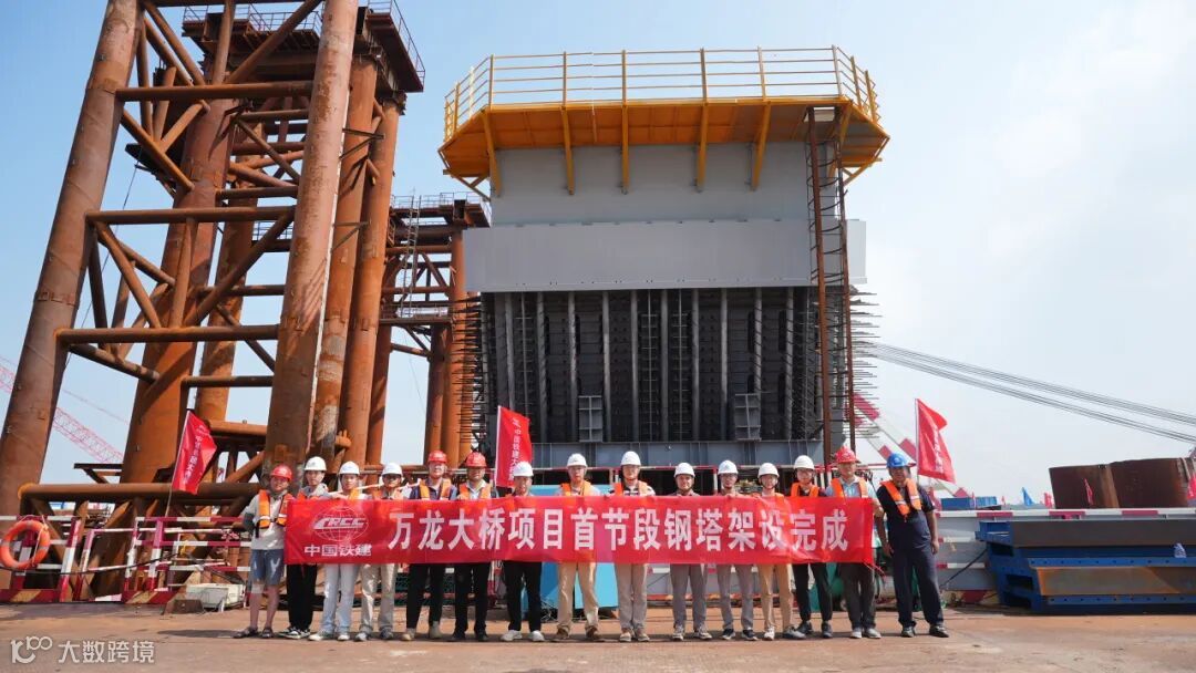 珠江监理集团10月10日,随着一台1200吨大型浮吊的成功起吊,长12米、宽10米、高8米、重达642.7吨的T0节段钢塔成功架设,由珠江建管代建的世界最大跨度自锚式悬索桥——万龙大桥,顺利完成首节钢塔架设这一重大节点,标志着万龙大桥建设正式迈入主塔钢结构施工新阶段,向主线通车目标迈出关键一步。