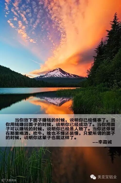 当你放下面子赚钱的时候,说明你已经懂事了。当你用钱赚回面子的时候,说明你已经成功了。当你用面子可以赚钱的时候,说明你已经是人物了。当你还停留在那里喝酒、吹牛,啥也不懂还装懂,只爱所谓的面子的时候,说明你这辈子也就这样了。