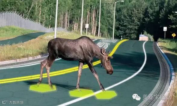 前期66号公路的升级仅限于一段公路,Solar Roadways公司旗下这款特别设计的太阳能面板中嵌有光伏电池板,能利用太阳能发电,不但可以承受汽车的重量,还搭载有内置LED灯,可以取代交通标识。