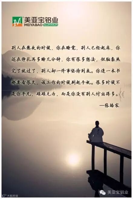 别人在熬夜的时候,你在睡觉,别人已经起床,你还在挣扎再多睡几分钟,你有很多想法,但脑袋热完了就过了,别人却一件事坚持到底。你连一本书都要看很久,该工作的时候刷起手机。很多时候不是你平凡,碌碌无为,而是你没有别人付出得多。