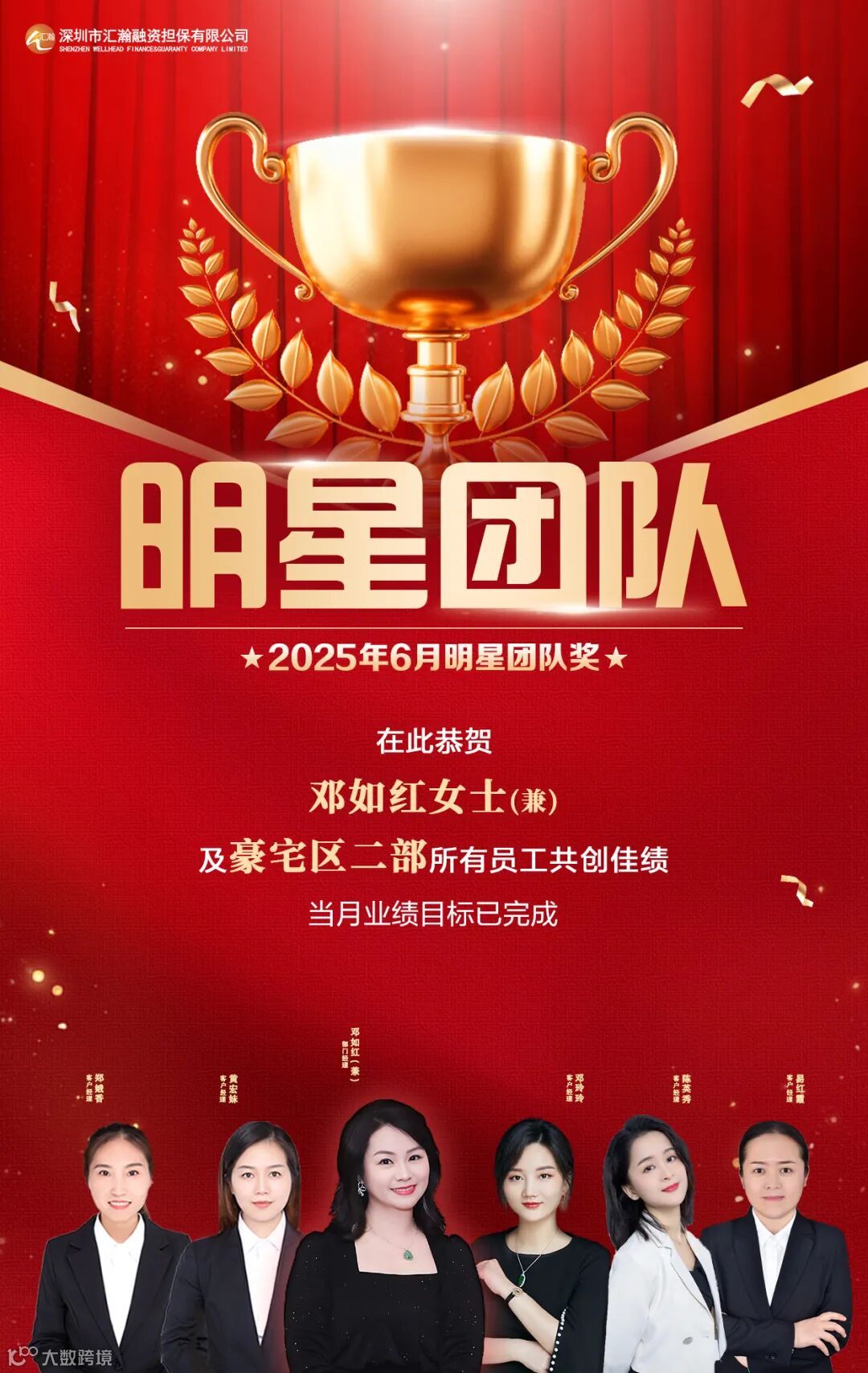 深圳汇瀚2025年6月明星奖