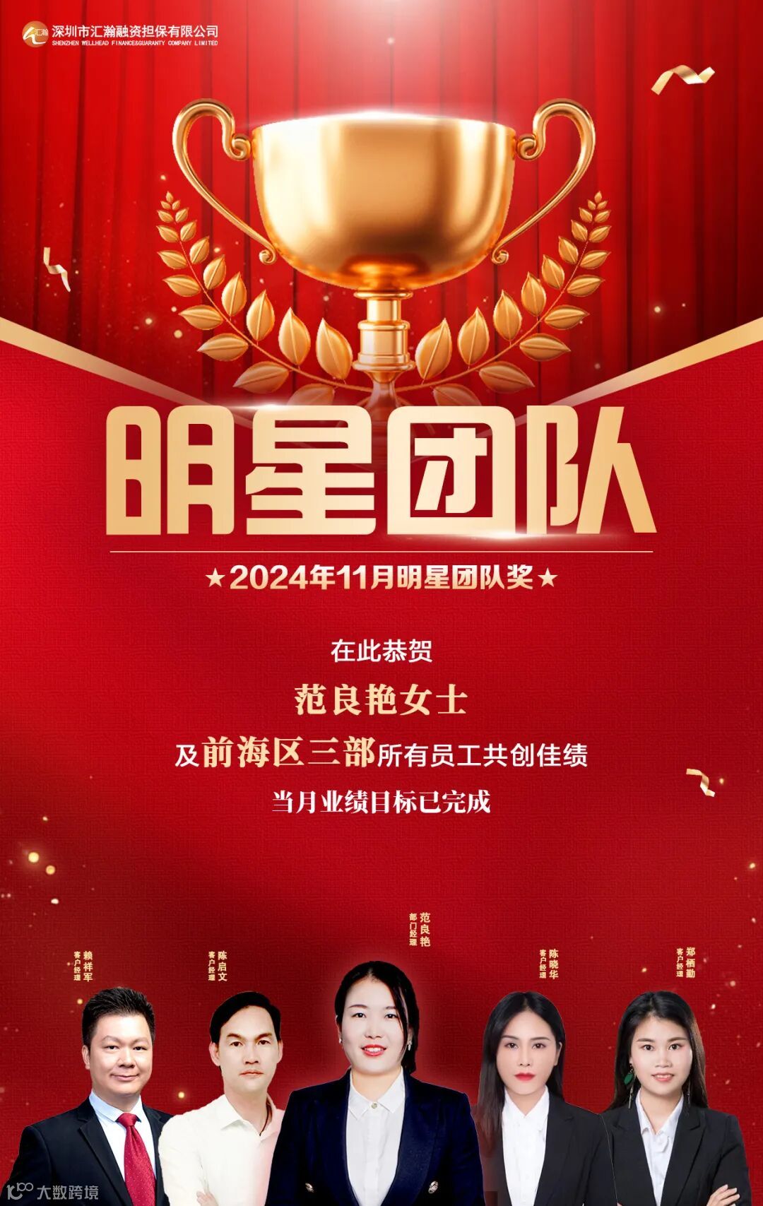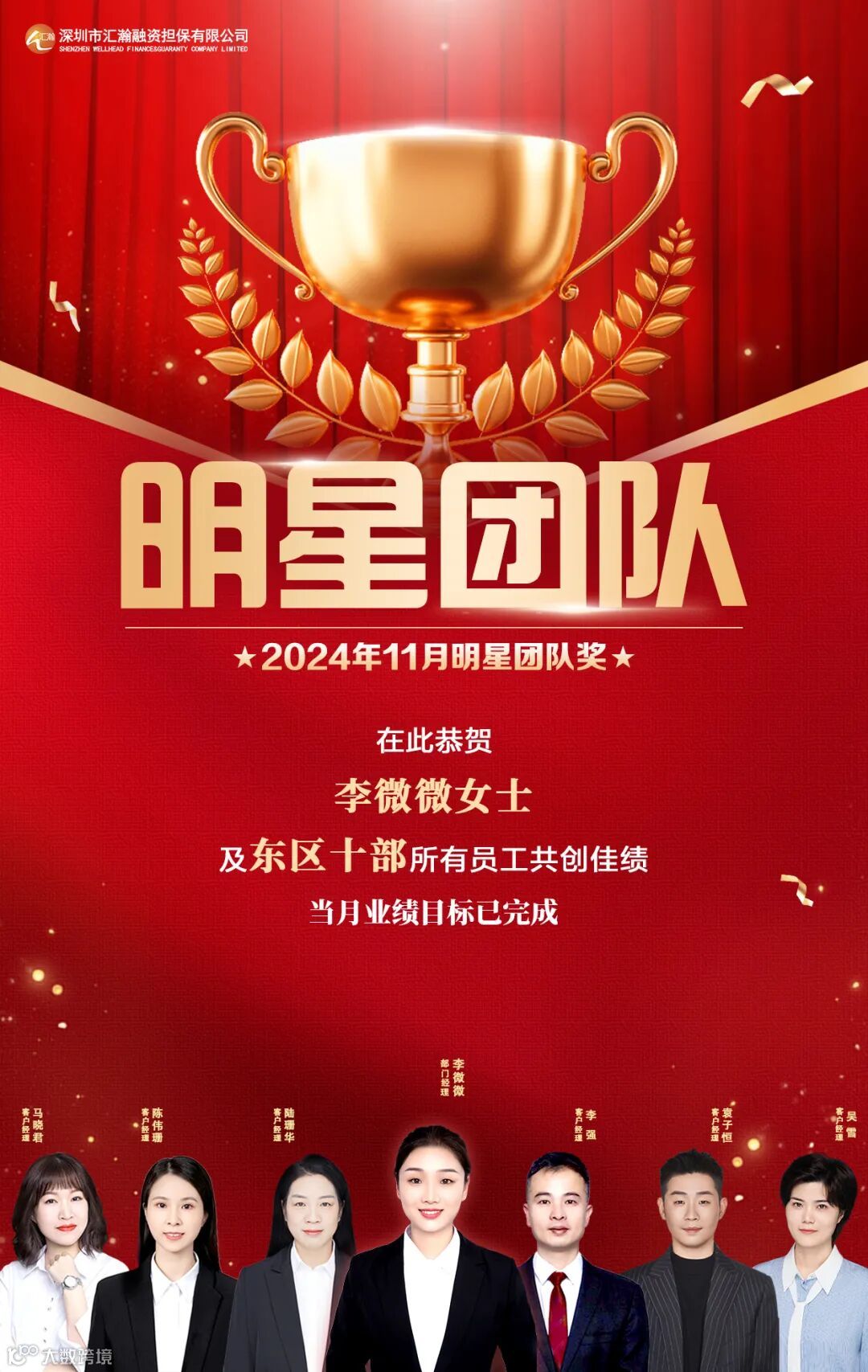 深圳汇瀚2024年11月明星奖