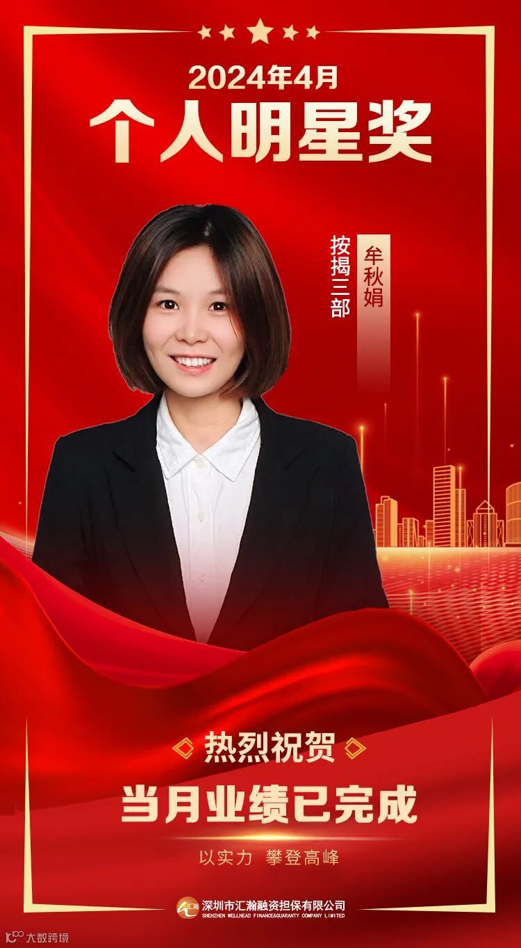 深圳汇瀚2024年4月明星奖