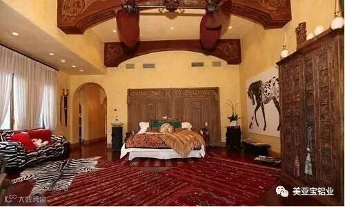 卧室是用来休息的地方,我不会搞得太复杂,但是必要的装饰还是要的。比如非洲风格深色实木衣橱和实木床、非洲风格家纺、动物纹路地毯或者非洲图腾风格手织地毯就成为了卧室的主要大件。
