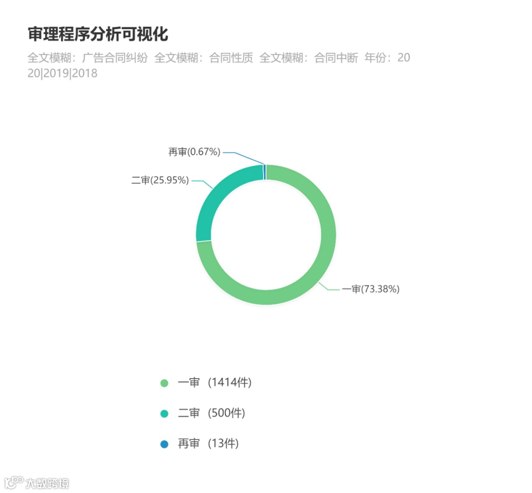 本次检索案例全部来源于Alpha案例库,以“广告合同纠纷”、“合同性质”、“合同中断”为关键词对广告合同纠纷案件进行检索,共获取了截至2020年4月12日(具体为2018、2019、2020年度案件)的1927篇裁判文书。