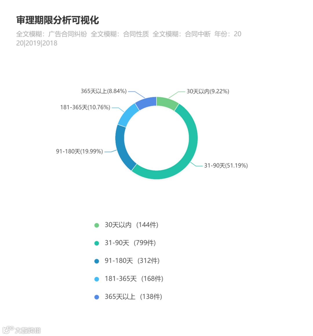 通过对审理期限的可视化分析可以看到,当前条件下的审理时间更多处在31-90天的区间内。