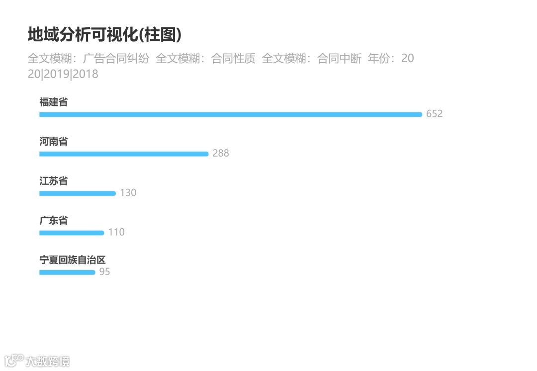 从地域分布来看,近三年来,广告合同纠纷产生最多的五个省份为福建省、河南省、江苏省、广东省、宁夏回族自治区。