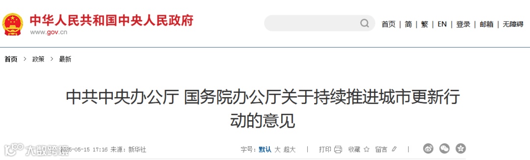 中共中央办公厅 国务院办公厅关于持续推进城市更新行动的意见