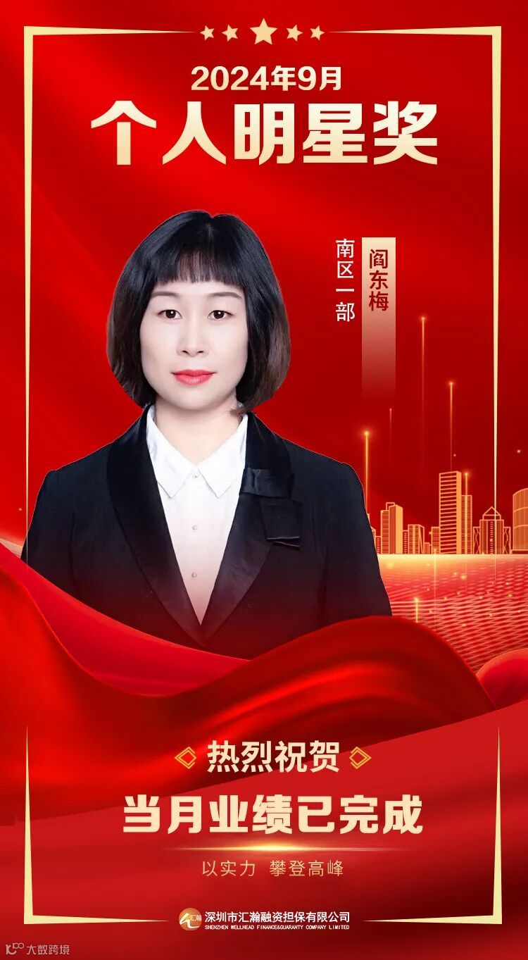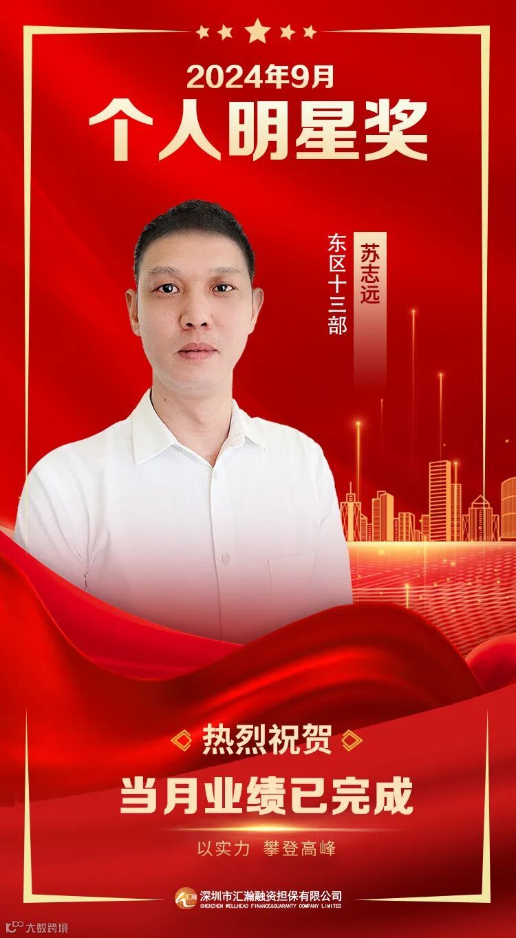 深圳汇瀚2024年9月明星奖