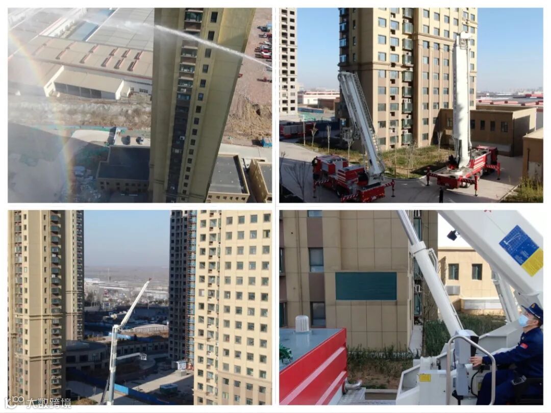 三、功能单元灭火作战效能测试。依托高层住宅建筑,以理论和实际相结合的方式,重点围绕车辆举高作业面、举升高度、水炮射程和供水压力流量等内容,对大队举高作业单元的72米举高喷射消防车、32米登高平台消防车和大功率泡沫消防车进行灭火作战效能测试,使全体指战员切实掌握执勤车辆的实际灭火效能,为实战提供重要数据支撑。