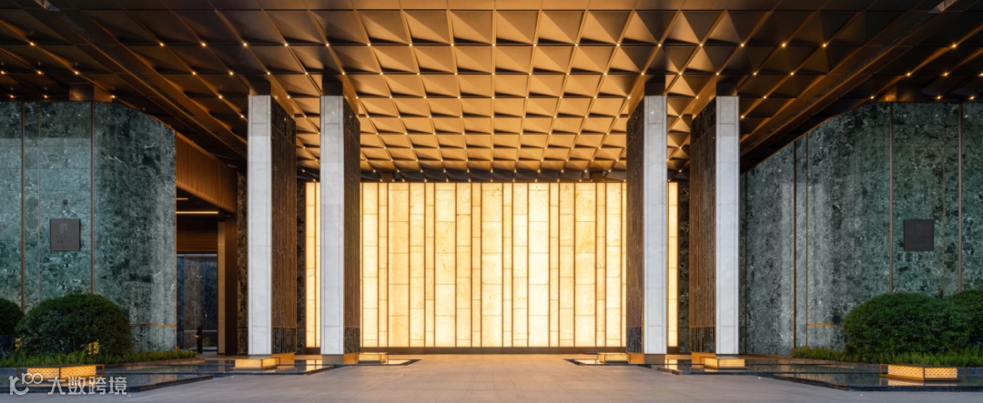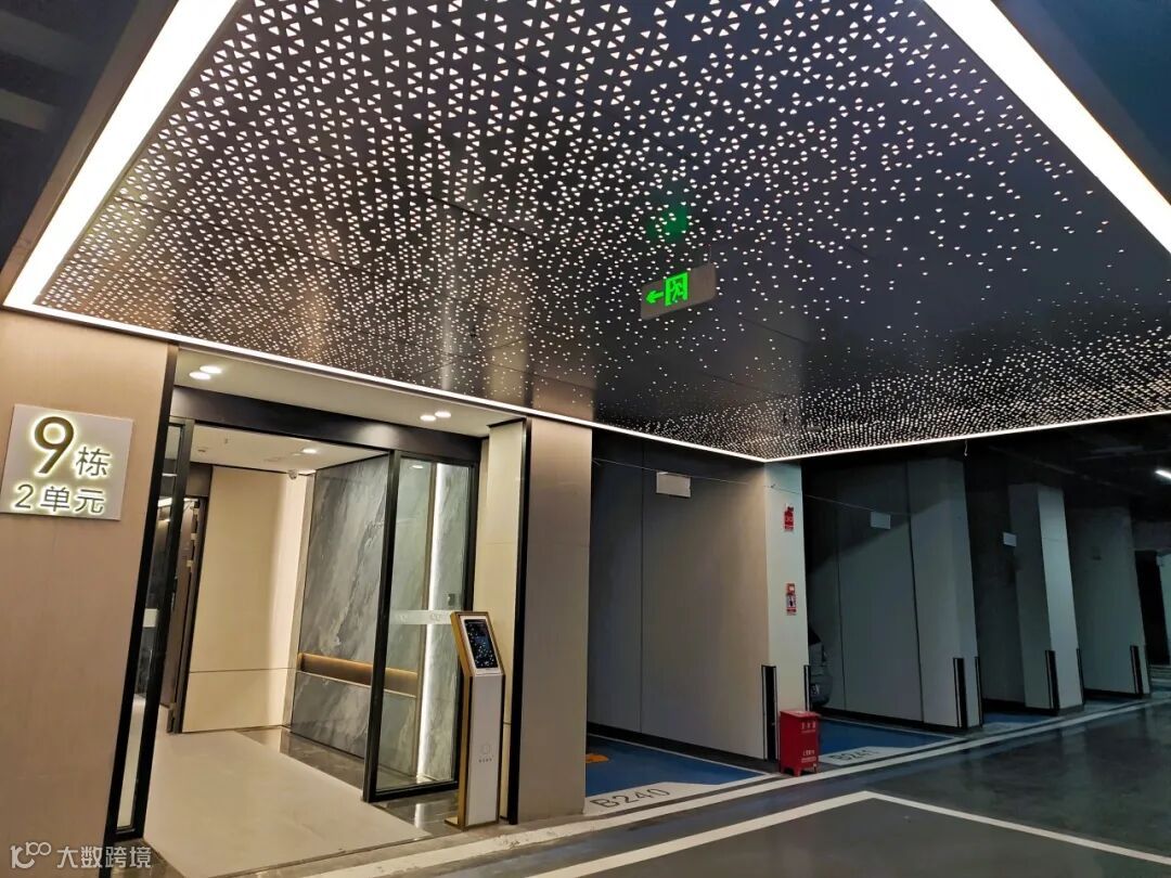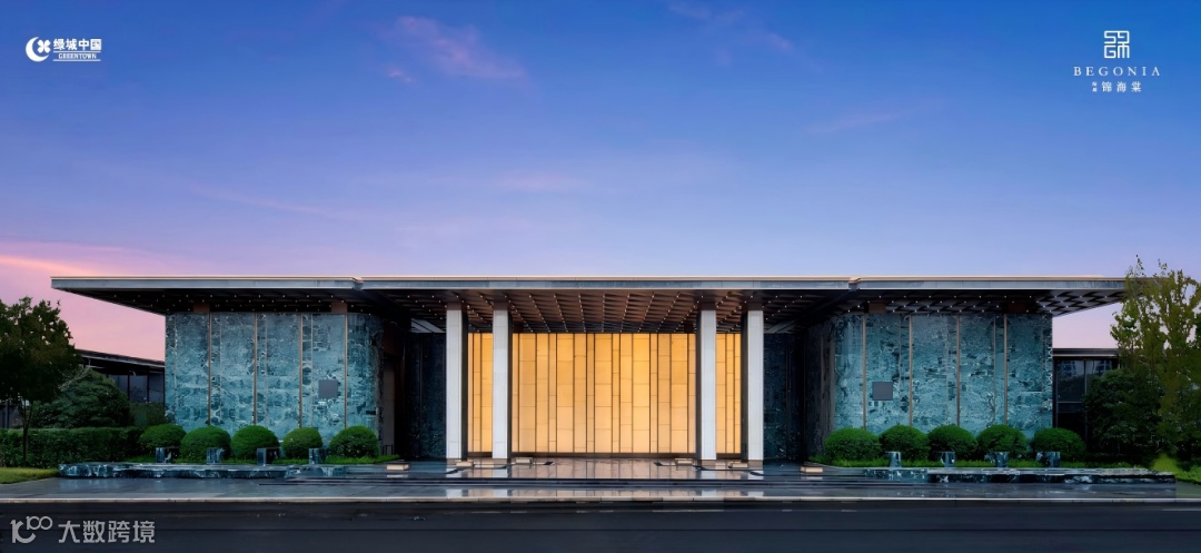 成都锦海棠,绿城为成都独创“锦画框”外立面,正门迎面即是高度约10米、宽幅达50米的“锦屏奢门”。四根奢石立柱、琉璃金方形折板吊顶拼接的门楼飞檐、“白雪公主”发光奢石照壁,层层递进,尊崇归家礼序。