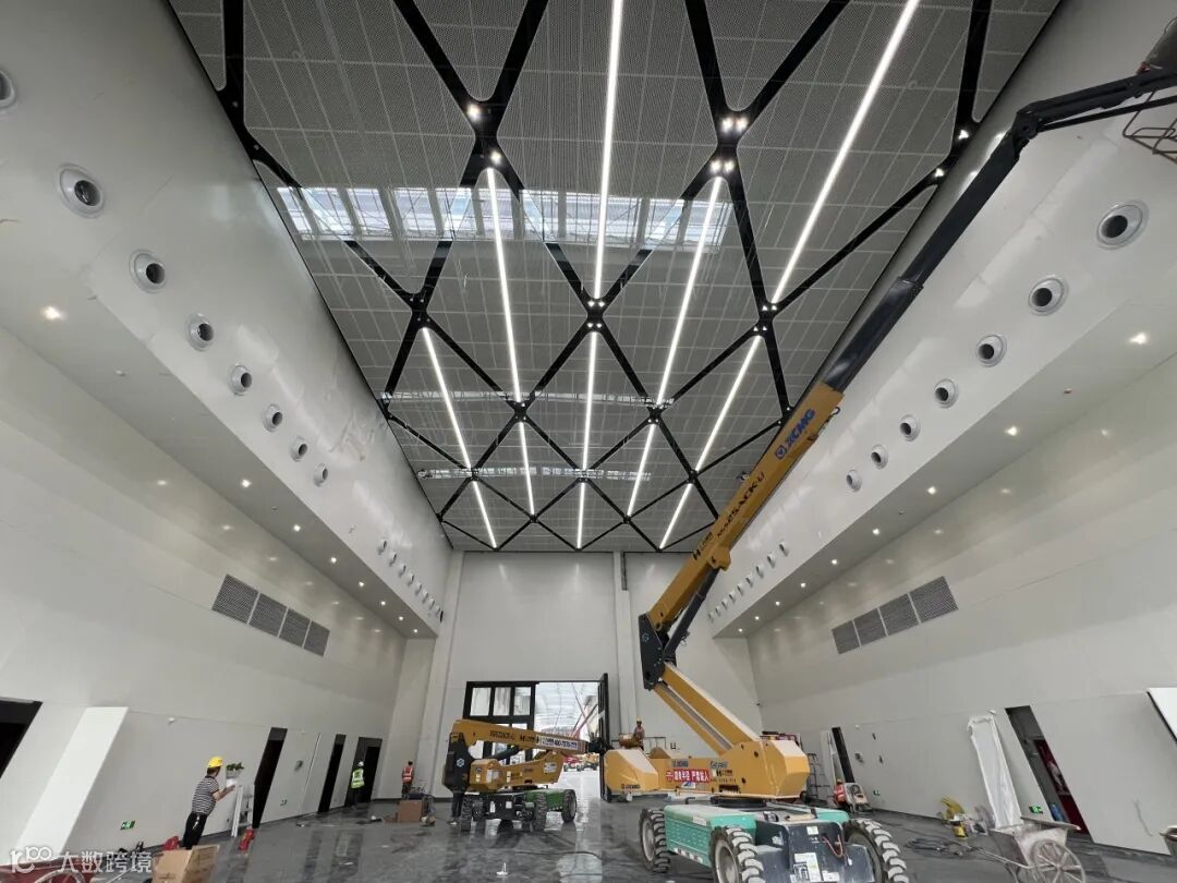 营造过程中,二号展厅存在内部墙面铝板施工面积大、平整度要求高以及大尺寸板材应用等情况,大规格板材区域表面平整度易出现较大偏差,给项目施工带来巨大挑战。