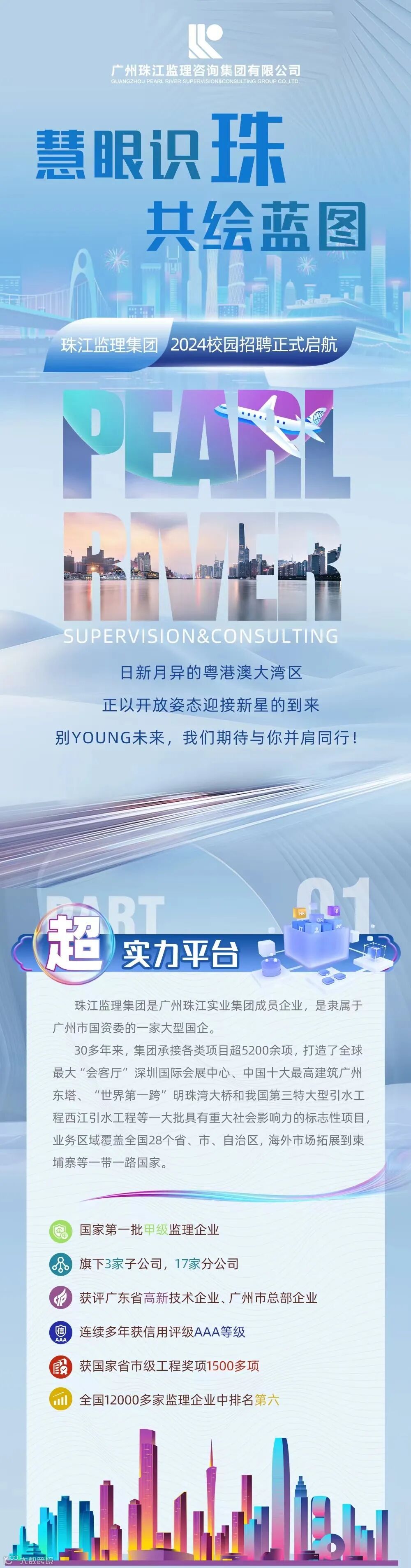 珠江监理集团是以全过程工程咨询、工程监理、项目管理/代建、造价咨询、招标代理、TIS咨询和投资决策咨询等为主营业务的大型国有工程咨询集团。